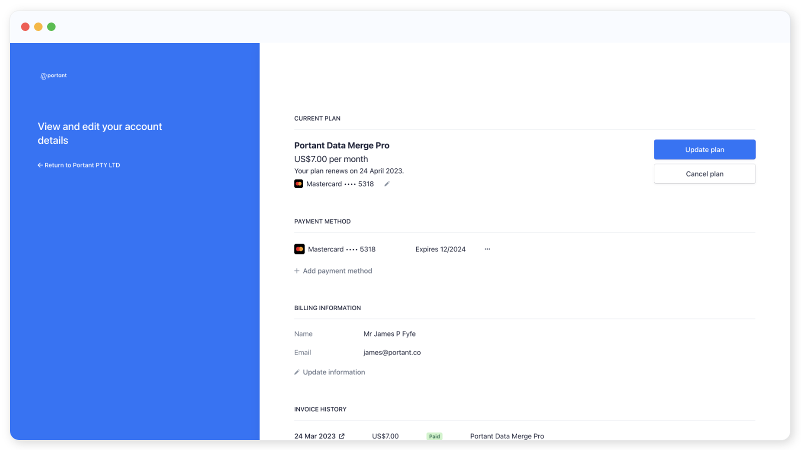 If you have purchased a Portant Plan and need to update or edit anything to do with your billing settings, then this is the article for you.