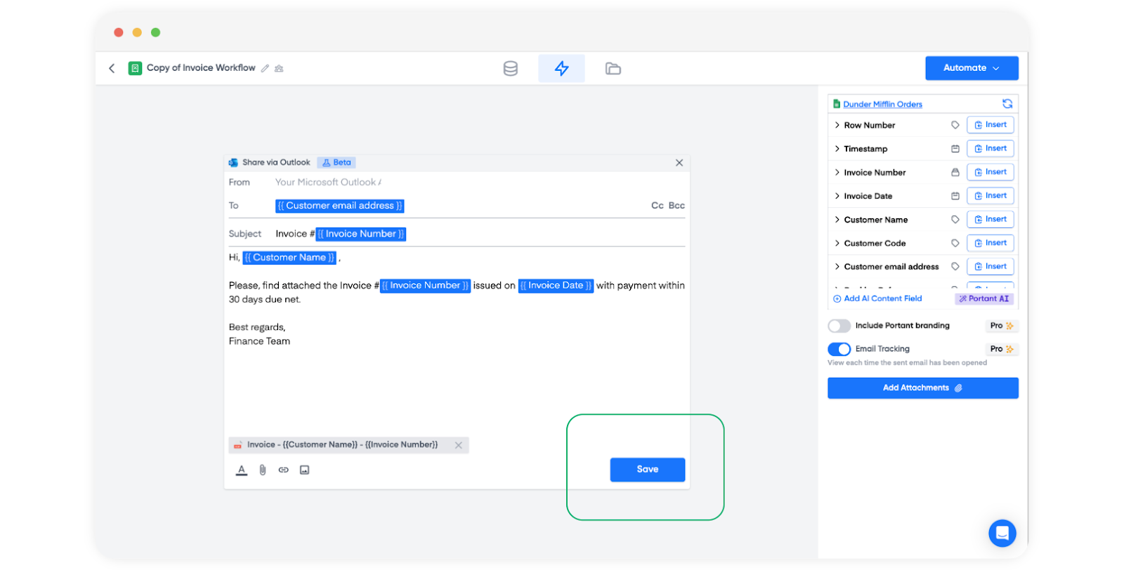 To conclude, personalize your email by adding your desired tags, attaching the necessary files, and then simply click on "Save" to save your changes: