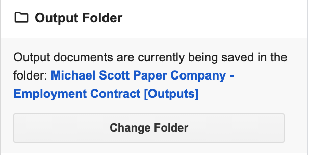In the top right hand corner of the Document Output box is a link to the output folder. This is the folder where Portant will save the document outputs. As mentioned above, this folder can be renamed and moved within your Google Drive. Portant will remember the folder location and save the files there.