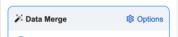 The Data Merge settings are located under the Data Source table. The main settings are shown on the front of this card and the advanced settings are in a menu accessible via a button in the top right hand corner. We have put together a more detailed article for each source type below: