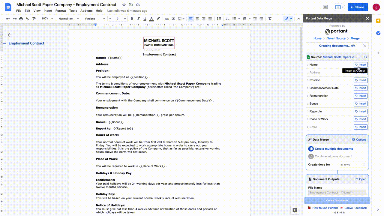 With Portant Data Merge you can optimise your document workflows within Google Workspace, eliminating copy-paste from your document creation. This 'Complete guide to getting started with Portant Data Merge' will walk you through how to connect a source, add tags to a template document and place your documents on auto pilot.