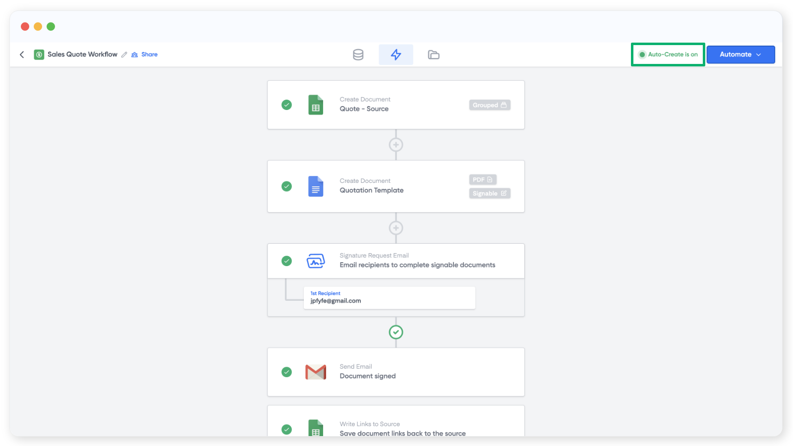 Google Sheets is a great source for a workflow if you already have data for the documents you want to create. This can already be in Google Sheets, or you can export the data from another platform in a csv and upload it to Google Sheets. In this guide we will show you how to: