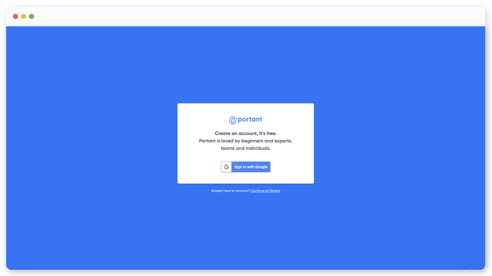 If you don't already have a Portant account, you can sign up for one for free here: app.portant.co/signup
