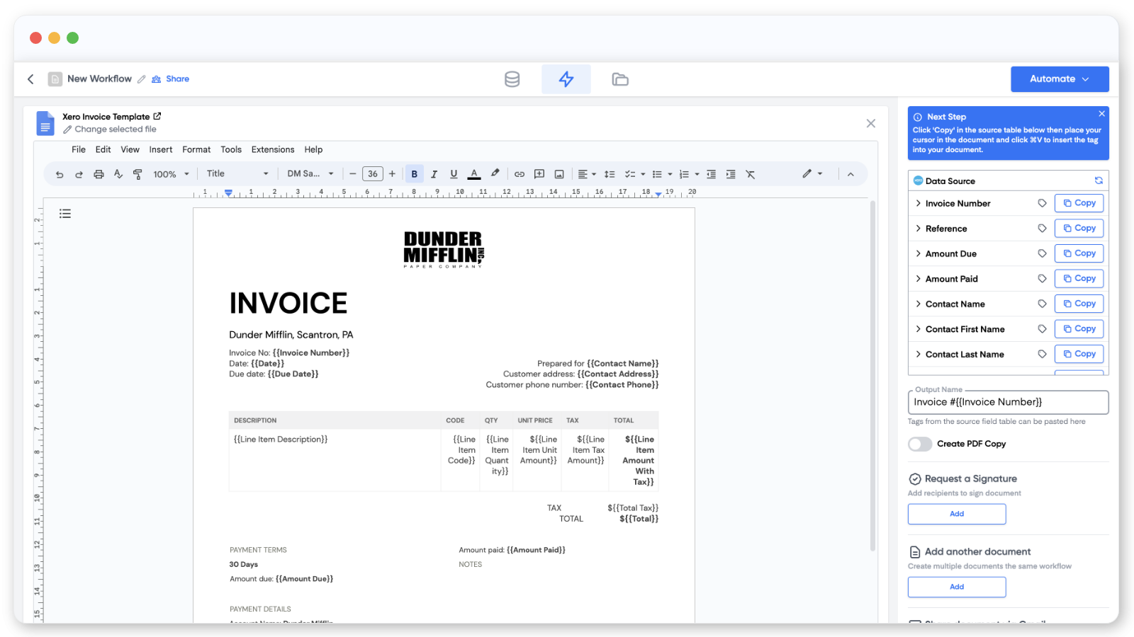 That's all there is to it. You've just automated invoices using Xero data and Google Docs. If you're ready to take the next step, you could add another block to your workflow to automatically email the invoices to the key contacts so they can process payments faster.